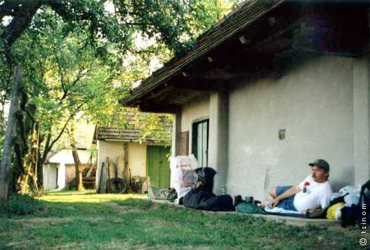 A szomszédok megengedik, hogy a Tuboly Úr portáján éjszakázzunk, amit elősegítendő még egy kancsó bort is adnak, méghozzá "fröccsben" |