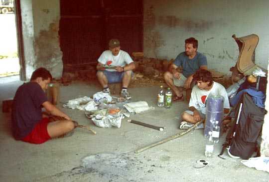 Ebéd utáni diskurálás fafaragás stb. A helybéli gyerekek számára olyan látványosságnak számítunk, hogy csak válogatott megfélemlítésekkel tudjuk őket távoltartani. |