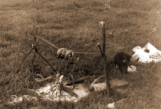 Hagyományos módon is sül a hal, hátha az agyagban sült változat nem lesz tökéletes. Csabinak mindenesetre ízlik a tegnap esti halászlé maradéka. |