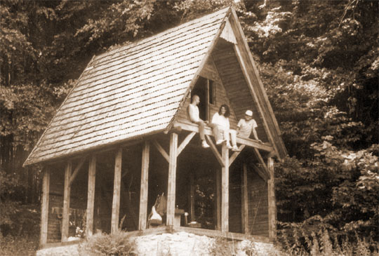Együtt a csapat a jól ismert faházban, sajnos az automatika elhamarkodta az exponálást, így a fotós még a lépcsőn szalad. |