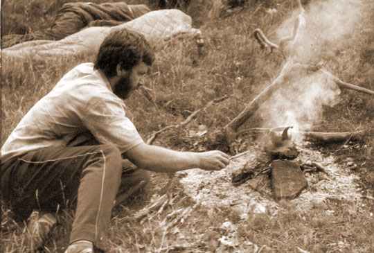 A rögtönzött sparhelten fő a kávé - ha nem is pálinkából, de az utolsó csepp vízből..