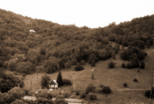 Visszatekintés, a nyeregben lévő Három falu templomára.