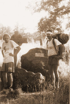 Az emlékmű megtekintése, a hosszú lejtőmenet után. Legalább a "fékező-izmaink" addig is pihennek.