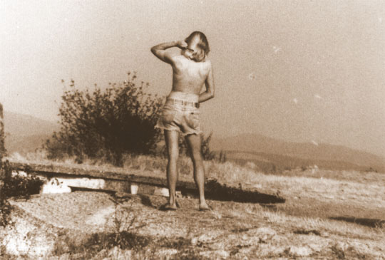 A reggeli napsütésben fésülködő ifjú. (Ugyanaz a Csodás, mint Nagymaroson.)