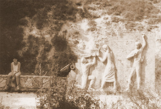 Munkásmozgalmi emlékfal jókedvű Magdival