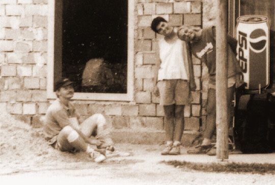 Vidám fiatalok - egymás mátkái - és lábápolást végző Nyápic.