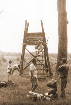 Szálláshelyünk ez a magasles, az Ötvös melleti kivágott erdő szélén.