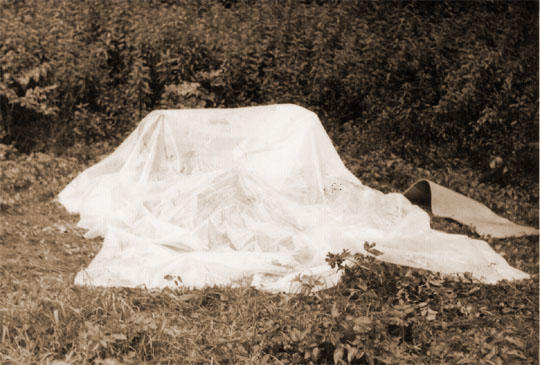 Az agrofólia üzem közben. Éjszaka nem csak a hátizsákoknak adott védelmet.
